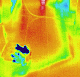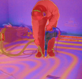 Bei Trocknungsmaßnahmen oder müssen am Estrich Kernbohrungen bis in die Dämmschichtebene angebracht werden. Dabei ist eines der häufigsten Probleme, dass die Leitungsverläufe von Fußbodenheizungen nicht oder nur teilweise bekannt sind. Mittels thermographischer Leitungsortung können leitungsfreie Fußbodenbereiche ermittelt und unnötige Beschädigungen der Heizleitungen vermieden werden.