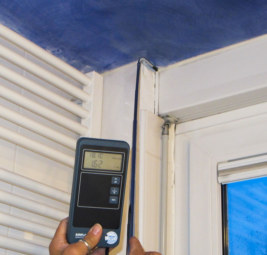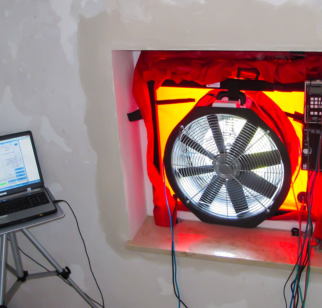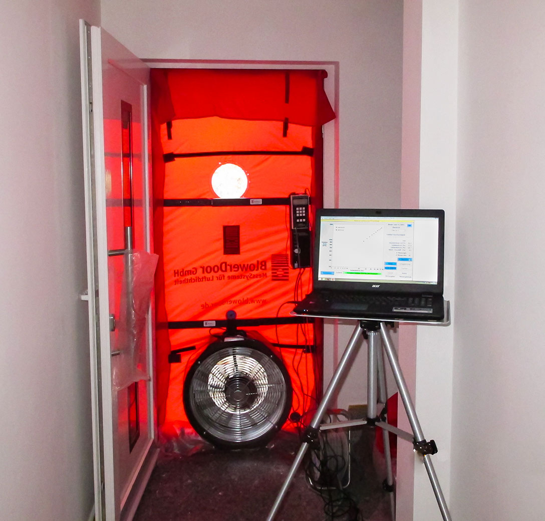 Mit dem Blower-Door-Verfahren nach DIN-EN 13829 lässt sich im Rahmen einer so genannten „n50-Messung“ die Luftdichtheit der Gebäudehülle gemäß EnEV, Anhang 4 überprüfen. Als Richtwert für die Luftdichtheit von Gebäuden gilt dabei die so genannte Luftwechselzahl. Sie gibt an, wie oft pro Stunde das umschlossene Luftvolumen über bei einem definierten Über- bzw. Unterdruck von 50 Pa, das entspricht einer Windlast von Windstärke 5, mit der Außenluft ausgetauscht werden darf.