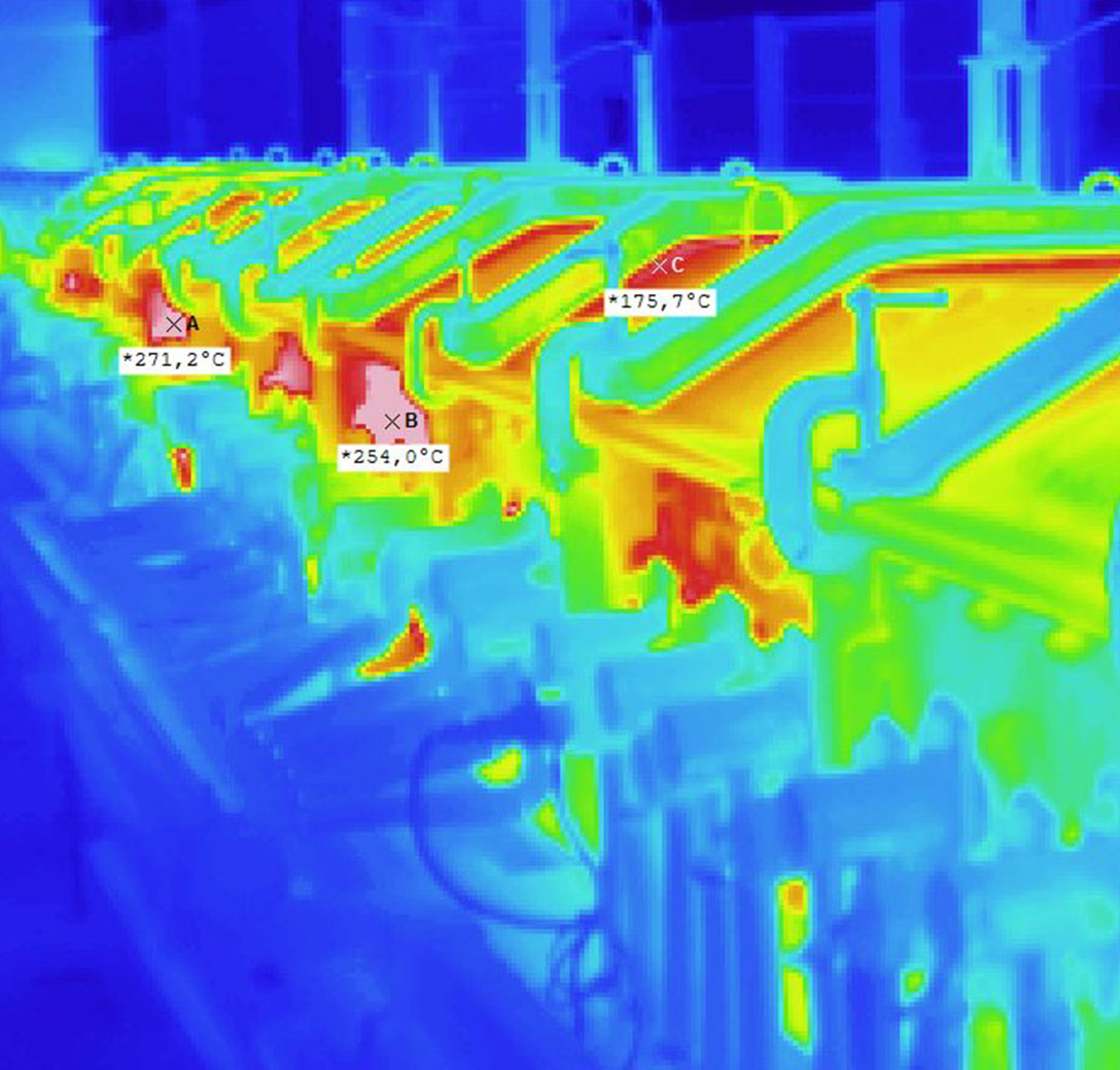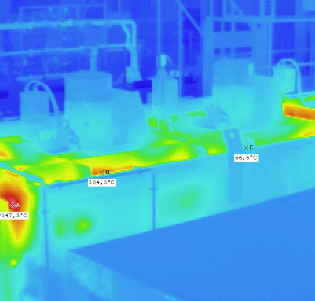 Energieverluste bei energieintensiven Hochtemperaturprozessen verursachen einerseits hohe Extrakosten und können andererseits bei thermisch kritischen Prozessschritten zu Qualitätsmängeln und hohen Ausschussquoten führen. Thermische Schwachstellen an Öfen treten z. B. Ofenwänden oder den Türen auf. Daraus resultieren zum einen Energieverluste, zum anderen können heiße Gase Beschädigungen an der Ofenhülle verursachen.